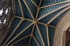 Ceilings are classified according to their appearance or construction. A cathedral ceiling is any tall ceiling area similar to those in a church. A dropped ceiling is one in which the finished surface is constructed anywhere from a few inches or centimeters to several feet or a few meters below the structure above it. This may be done for aesthetic purposes, such as achieving a desirable ceiling height; or practical purposes such as acoustic damping or providing a space for HVAC or piping. An inverse of this would be a raised floor. A concave or barrel-shaped ceiling is curved or rounded upward, usually for visual or acoustical value, while a coffered ceiling is divided into a grid of recessed square or octagonal panels, also called a "lacunar ceiling". A cove ceiling uses a curved plaster transition between wall and ceiling; it is named for cove molding, a molding with a concave curve.[1] A stretched ceiling (or stretch ceiling) uses a number of individual panels using material such as PVC fixed to a perimeter rail.[2]