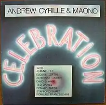 Celebration is an album by drummer Andrew Cyrille. It was recorded in February and May 1975 at Ali's Alley Studio 77 in New York City, and was released later that year by the Institute of Percussive Studies. On the album, Cyrille is joined by members of the band Māōnō: saxophonist David S. Ware, trumpeter Ted Daniel, vocalist Jeanne Lee, synthesizer player Romulus Franceschini, pianist Donald Smith, bassist Stafford James, and percussionist Alphonse Cimber. The musicians are joined by poet Elouise Loftin.[1]