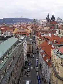 Celetná (German: Zeltnergasse) is a street in the Old Town, Prague, connecting the Old Town Square with the Powder Gate.[1] It is one of the oldest streets in Prague and is part of the Royal Route.[2] The street is approximately 400 meters long and trams once ran on it, today most of the street has the status of a pedestrian zone.