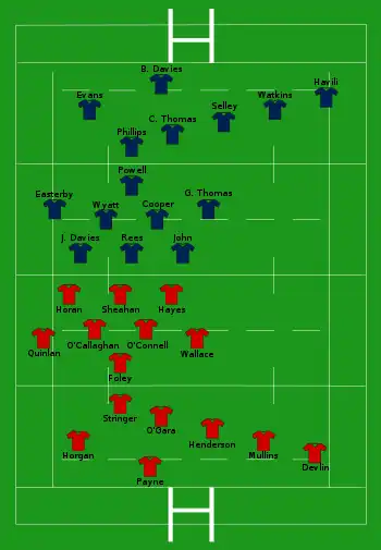 | Try: Horgan 6' c O'Gara 22' c Mullins 76' c Con: O'Gara (3/3) Pen: O'Gara 39' Drop: O'Gara 40' | Report | Try: Phillips 34' c Con: C. Thomas (1/1) Pen: C. Thomas (3) 12', 42', 59' |