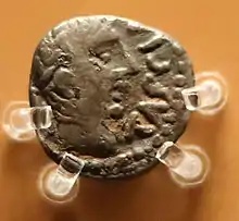 Eppillus appears to have held land in two areas and issued a different series of coins in each of them.[47] In particular the gold coins Eppillus had circulated in the area around Calleva Atrebatum were thicker than those circulated in Eppillus's holdings in northern Kent and the silver coins heavier.[54] The style of the coins suggests a different die cutter in each region with a few cases of each cutter producing a die for the other region.[55] The coins issued around Calleva Atrebatum represent something of a break from previous styles although some of them appear to have derived design elements from the coins of Tincommius as well as various Roman denari.[56] A single stater has been found in Dover baring the name of Eppillus and an otherwise unknown Anarevito.[57][58] A small number of coins have been found in kent that appear to have been jointly minted by Eppillus, Tincommius and a third leader named Verica.[59] The style of these coins is similar to those circulated in Eppillus's holdings in northern Kent with elements similar enough to suggest a common die cutter.[60]