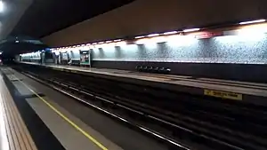 Cementerios is an underground metro station on Line 2 of the Santiago Metro, in Santiago, Chile. The word cementerios means "cemeteries" in English and the station is so named due to its surroundings of Recoleta Avenue that forms the borders of two cemeteries, the Santiago General Cemetery to the west and the smaller Catholic Cemetery to the east. The station was opened on November 25, 2005, as part of the extension of the line from Cerro Blanco to Einstein.[2]