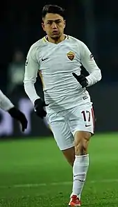 On 16 July 2017, he became a Roma player for a €13.4 million fee.[5] He scored his first goal for Roma in a 1–0 win over Hellas Verona in the Serie A on 4 February 2018.[6] In the same month, he marked his Champions League debut with a goal; the opener in a 1–2 loss to Shakhtar Donetsk in the first leg of the first round of knockout fixtures,[7] becoming the youngest Turkish player ever to score in the Champions League.[8]