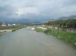 The river flowed up to the 12th century in a bed further east, joining the sea near Ceriale. Its course was diverted to the present bed following a decision of the Republic of Genoa. The name Centa comes from cinta (Italian for town wall), because the new flow flanked the town wall of Albenga. The old river bed became almost totally dry from the 16th century[3]