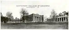 In 1846, the college's trustees changed the institution's name to Centenary College of Louisiana and adopted the alumni of the two predecessor colleges.[7] During the 1850s, enrollment reached 260, and the college constructed a large central building, which included classrooms, laboratories, literary society rooms, a library, a chapel, offices, and an auditorium with seating for over 2,000 people.[8] This prosperity halted with the American Civil War. Following a meeting on October 7, 1861, the faculty minute book states, "Students have all gone to war. College suspended; and God help the right![9]" During the war, both Confederate and Union troops occupied the campus’ buildings.[10] Centenary reopened in the fall of 1865, though struggled financially through the remainder of the nineteenth century. In 1906, the Louisiana Conference of the Methodist Episcopal Church, South, accepted an offer from the Shreveport Progressive League to relocate the college.[11] The Jackson campus now serves as the Centenary State Historic Site operated by the Louisiana Office of State Parks; it is listed on the National Register of Historic Places.[10]