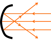 It can also be defined as the spherical distance between the point at which all the rays falling on a lens or mirror either seems to converge to (in the case of convex lenses and concave mirrors) or diverge from (in the case of concave lenses or convex mirrors) and the lens/mirror itself.[2]