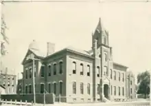 CCHS has roots in St. Mary's School, built at a cost of $26,000[nb 3][29] by Holy Trinity Parish in 1884 during the pastorate of Michael Weldon.[6]: 152 The building was located at the northeast corner of the intersection of Locust and Center Streets in Bloomington, Illinois.[30] Initially only a grade school, the building was altered in 1886 to add high school classes. Two graduates in 1898 composed the high school's first graduating class. The parish paid off the debt for the school building in 1909. In 1912 Illinois State University and the University of Illinois recognized St. Mary's high school curriculum. The graduating class that spring had twenty students.[5]