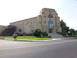 In 1932, the school relocated to the current three-story art deco brick building on 2.2 acres (0.89 ha) at 1403 N. St. Mary's Street[9] and was renamed once more to Central Catholic School.[1][10] Classrooms were added to the unfinished third floor in the late 1940s.[11] By 1950 attendance grew to 740, including its first black student in 1951.[9] The third floor was not occupied until 1953. Grade school classes were dropped in 1955.[9] A Dr Pepper bottling plant occupied the northeast corner of the site until 1956. By the end of the 1950s the school added its first lay teacher to its staff, to be evenly split between Marianist brothers and lay people within ten years.[9]