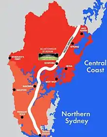 The Central Coast Bears catchment would have spanned a vast and populated area from Mosman on Sydney's Lower North Shore to Lake Munmorah at the northern peak of the Central Coast of New South Wales. Within this catchment area are close to 1,000,000 residents (in 2012, 609,533 were residents of the northern Sydney Local Government Areas of Hornsby, Hunters Hill, Ku-ring-gai, Lane Cove, Mosman, North Sydney, Ryde and Willoughby and 325,295 in Central Coast Council ).[10]