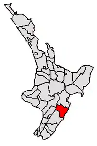 Central Hawke's Bay District is part of the Hawke's Bay Region in the North Island of New Zealand. Formed in 1989, it has an area of 3,333 square kilometres with a population of 15,950 (June 2022).[2] It had a population of 12,717 people as of the 2013 census. This is a decrease of 237 people, or 1.8 percent, since the 2006 census.[3] It covers the area from Pukehou in the north to Takapau in the south, and from the western Ruahine Range to the Pacific coast in the east.