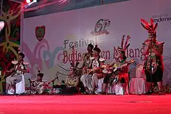 Japen or Kecapi is a lute-like instrument that is honored by Dayak people. This traditional musical instrument is usually played as an accompaniment for Central Kalimantan traditional music such as Karungut recitation, a Dayak oral literature in the form of musicalized rhyme scheme. Japen is mainly made of wood and nylon rope for its strings.[20][21]