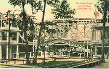The park opened on July 2, 1893 as Rittersville Park, offering 40 acres of shady walks and ample park benches. It was built in a wooded area with picnic groves, walking paths, a few amusements, theaters and food stands. The first rides were a carousel, a toboggan chute, and the "Razzle-Dazzle".[2] About 1898 the menagerie closed and the owner of the Manhattan Hotel bought two monkeys from the zoo keeper. Much to his dismay, one of the monkeys set fire to the hotel. It was rebuilt the same year. The new Manhattan Hotel was a place for the latest fashions to be seen by the great crowds that would come from as far away as Mauch Chunk and Philadelphia to the park which had one of the biggest outdoor theaters in Pennsylvania.[1]