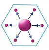 According to the marketing principle K = 3, the market area of a higher-order place (node) occupies one-third of the market area of each of the consecutive lower size place (node) that lies on its neighbour; the lower size nodes (6 in numbers and second larger circles) are located at the corner of a largest hexagon around low value the high-order settlement. Each high-order settlement gets one-third of each satellite settlement (which are 6 in total), thus K = 1 + 6 × 1⁄3 = 3.