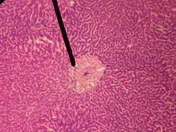In microanatomy, the central veins of liver (or central venules)[1] are veins found at the center of hepatic lobules (one vein at each lobule center).
