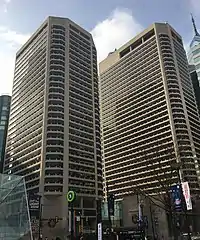 Centre Square is an office complex in Center City, Philadelphia, Pennsylvania, United States. The complex consists of two concrete high-rise towers: the 417 feet (127 m) Centre Square I (also known as Centre Square East) and the 490 feet (150 m) Centre Square II (Centre Square West)—respectively, the 24th- and 15th-tallest buildings in Philadelphia. Designed by Vincent Kling & Associates in the 1960s, Centre Square opened in 1973. The complex is credited with shifting Philadelphia's downtown office district from South Broad Street to West Market Street. A tenant since 1975, management consulting firm Willis Towers Watson is Centre Square's largest tenant.