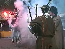 The Semaine du dragon was conceived and directed by the centre and the request of the Pays Touristique de l'Oust de Brocéliande. Pierre Dubois is the patron. It has been held every other year since 2009 (in odd numbered years),[44] at the end of October or beginning of November, to coincide with the Celtic festival of Samhain. Various activities are organised by cultural organisations: storytelling, fire-eaters, tastings, games, meals, concerts, lectures, theatre, films and conferences. The evening of the 31 October is concluded with a vintage brew by the Brasserie Lancelot.[45] In even numbered years, Le Retour de Flammes du Dragon (The Dragon Flashback), an event of lesser magnitude is held over three days.[46]