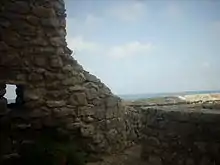 On the summit of the promontory are extensive remains of a Norman castle. The town's fortifications formerly extended to the shore, on the side where the modern town now is, in the form of two long walls protecting the port. There are remains of a wall of massive rectangular blocks of stone at the modern Porta Garibaldi on the south.[15]