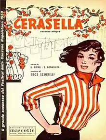 "Cerasella" is a 1959 Canzone Napoletana song composed by Enzo Bonagura, Danpa (Dante Pinzauti) and Eros Sciorilli. The song, with a double performance by Gloria Christian and Wilma De Angelis, was presented at the seventh edition of the Festival di Napoli and then got an immediate commercial success, peaking at sixth place on the Italian hit parade.[1]