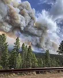 During the fire, it prompted the closure of the nearby Bandelier National Monument and the Valles Caldera National Preserve,[5][6] as well as New Mexico State Road 4 from mile marker 27 to mile marker 59.