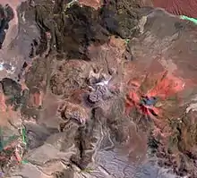 Cerro Porquesa (Aymara[2]) is an approximately 4,600 metres (15,100 ft) high[1] (800 metres (2,600 ft) above base)[3] rhyodacite lava dome in the Andes.[4] It has a 1.5 by 3 kilometres (0.93 mi × 1.86 mi) oval outline, and is 800 metres (2,600 ft) high. The lava dome is accompanied by block-and-ash flows and lava flows[5] and the presence of two volcanic cones has been reported.[6] The lava dome is of Pliocene/Pleistocene age[7] with little glacial features on the younger domes indicating young ages.[1] The Quebrada de Piga, which flows to Salar de Huasco, originates at Cerro Porquesa.[8]