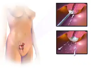 A radical trachelectomy can be performed abdominally[89] or vaginally[90] and opinions are conflicting as to which is better.[91] A radical abdominal trachelectomy with lymphadenectomy usually only requires a two- to three-day hospital stay, and most women recover very quickly (about six weeks). Complications are uncommon, although women who are able to conceive after surgery are susceptible to preterm labor and possible late miscarriage.[92] A wait of at least one year is generally recommended before attempting to become pregnant after surgery.[93] Recurrence in the residual cervix is very rare if the cancer has been cleared with the trachelectomy.[88] Yet, women are recommended to practice vigilant prevention and follow-up care including Pap screenings/colposcopy, with biopsies of the remaining lower uterine segment as needed (every 3–4 months for at least 5 years) to monitor for any recurrence in addition to minimizing any new exposures to HPV through safe sex practices until one is actively trying to conceive.