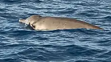 The sei whale is present worldwide, essentially in subtropical, subpolar and temperate areas.[22] However, offshore, it is often hard to distinguish from Bryde's whale, with which it has long been confused.[23] It is also sometimes hard to distinguish from the fin whale. In the summer, in the Atlantic Ocean, it is generally found in the vicinity of the Gulf of Maine. Little is known about its migration throughout the remainder of the year.[22] It prefers deep waters and is known to avoid semi-enclosed seas and gulfs.[24] However, stranded individuals have been observed in the Gulf of Mexico and off the coasts of the Greater Antilles Archipelago.[5]