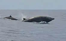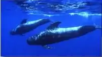 In the water it is difficult to distinguish between the short- and long-finned pilot whales,[90] but morphological genetic analyses show characteristic differences.[91] Their distributions overlap in the North of the Caribbean region, along the American coast,[90][92] but only the short-finned pilot whale is observed in the Caribbean region, the long-finned species preferring to avoid warm waters.[92] However, some strandings of long-finned pilot whales have been observed in Florida.[90]