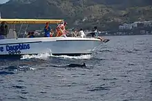 The spinner dolphin is observed along the entire Caribbean arc, although in variable numbers.[44][45][46] Its preferred habitat appears to be around the islands, particularly in the coastal zone and around the seamounts.[34] There is a major resident population in the Bahamas.[47] They are hunted for food in Saint Vincent and the Grenadines.[48]