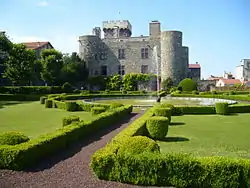 The original castle was built at the end of the 11th century, making it one of the oldest castles in the Auvergne.[1] It belonged to the Counts, and then the Dauphins, of Auvergne, and it guarded a pass through which ran the old Roman road from Clermont to Puy-en-Velay. Its name came from the Latin word Oppidum from the Gallo-Roman hilltop fortress towns of the region. The first castle had an interior court surrounded by five towers, three of which still stand. In the 12th century a taller square castle keep with crenelation replaced one of the corner towers. The castle was captured by the English in 1381, then recaptured in 1393 by Marechal Boucicault and Marechal Sancerre.