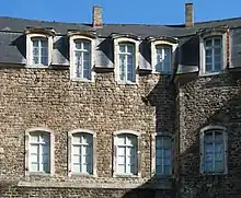 In the sixteenth century, on the eastern side of the castle, the walls were embedded in thick stone masonry in order to form a shielding plate, and faussebrayes were built to encompass five of the nine towers under an almost continuous roof in order to protect the castle from the ever advancing artillery at the time. The first tower on the left is the only one that has kept its original aspect. It is pierced by three levels of arrowslits constructed in staggered rows and covered with a conical roof (toit en poivrière in French). The following tower, located next to the chapel, contains the treasure chamber.