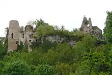The Château de Morimont (German: Moersberg) is a ruined castle in the Alsace region of France, in the commune of Oberlarg in the Haut-Rhin département. It is 40 km southwest of Mulhouse and 45 km west of the Swiss city of Basel.