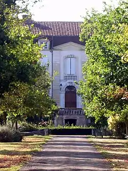 The present Château de Saint-Maurice is one of three in the vicinity of the village of Saint-Maurice-sur-Adour, the others being the 18th century Château de Lobit and the Château de Myredé.[3] It was built in the 19th century, and replaced the former residence of the Viscounts of Béarn.[4] It is a rectangular 2-storey building, with attics with nine bay windows. The center bay projects slightly from the roof above a pediment.[3]