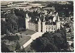 The castle is in a strategic position, dominating the village of Verteuil-sur-Charente and the Charente valley. In the past it controlled the road from Limoges to La Rochelle, on the route between the courts of France and Spain.[1] The word "Verteuil" was often used in the Middle Ages to designate a fortified place. Jean Froissart (c. 1337–1405) described it as "un meult fort chasteau en Poictou sur les marches du Limousin et de la Saintonge" (a strong castle in Poitou on the borders of Limousin and Saintonge).[2] The château, a few miles north of Angoulême and in fact in Angoumois, was later used as the country seat of the La Rochefoucauld family.[3]