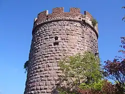 The Château du Haut-Ribeaupierre (German: Hohrappolstein or Burg Hohrappoltstein) is one of three castles (with the Château de Saint-Ulrich and the Château du Girsberg) which overlook the commune of Ribeauvillé in the Haut-Rhin département of France. Situated at an altitude of 642 m, it overlooks the other two castles.