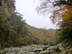 Chōmonkyō Prefectural Natural Park (長門峡県立自然公園, Chōmonkyō kenritsu shizen kōen) is a Prefectural Natural Park in central Yamaguchi Prefecture, Japan. Established in 1962, the park spans the borders of the municipalities of Hagi and Yamaguchi.[1][2]