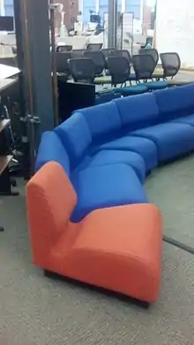 Chadwick Modular Seating is a modular sofa that is composed of one or more sections that can be arranged to create long, contiguous seating surfaces for offices and homes. Multiple section shapes were produced in many fabrics and colors. Sections were available in straight, wedge and elbow shapes.[1]