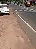 The lane division was installed to segregate traffic in opposite directions. The concrete divider started at Chala temple bus stop - where the descend from hill levelled off - and extended 200 meters up to the next junction. The divider was constructed by fixing 50 cm high concrete blocks along the center line. The dividers, originally painted white and black strips,[4] were blackened with vehicle exhausts. The concrete lane divider in Chala did not have a warning sign installed on it to indicate start of division or presence of obstruction in the middle of the road. In Kannur August night temperature is normally between 25oC to 28oC and humidity is above 80%. Mild rain was present during the time of accident. There were a few one and two storied commercial buildings on the north side of the highway and several houses on both sides. The nearest house was within 20m of the highway.