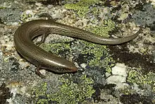 Chalcides bedriagai, commonly known as Bedriaga's skink, is a species of lizard in the family Scincidae. The species is endemic to the Iberian Peninsula. It usually lives in sandy areas with sparse vegetation and good ground cover. It can also live in open woodland and burrow into loose soil. Females of the species give birth to live young. This skink is active during day and dusk, and it is very timid. It may reach about 16 cm (6.3 in) in total length (including tail), and it has five digits on each foot. It preys on insects, spiders, slugs, and woodlice.