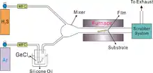 The CVD apparatus for Ge-Sb-Te thin film deposition is shown schematically to the right.