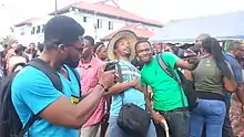 Young Ghanaian ladies having fun at Chale Wote Street Art Festival