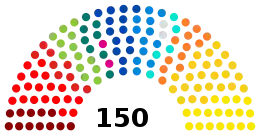 The Representatives are divided into two so-called "language groups". Of the total of 150 representatives, 88 are part of the Dutch-language group, which consists of representatives from the Dutch-language area, and 62 are part of the French-language group, which consists of representatives from the French-language area and the German-language area. For the representatives from the Brussels region, the language in which they take their oath as a representative determines which language group they belong to. Following the 2007 federal election, the Chamber has a German-speaking member (Kattrin Jadin) for the first time since 1999.[3]