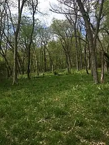 In 1946, the property was gifted to Beloit College by T.C. Chamberlin's son, Rollin Chamberlin. Geology Professor Monta Wing, who arrived at Beloit College in 1923 after working at the University of Chicago, was a primary factor in convincing Rollin to donate the property to the college; Wing took several trips down to Chicago to speak with the Chamberlin family in an attempt to complete this goal.[1] Eventually, in 1946, he did, and for a long period of time, the property was left to become overgrown. Once acquired by the college, the site fulfilled its intended role as a multipurpose bird sanctuary, tree preserve, geology and biology field and research area, and even recreation area until 2000, when the area became overgrown and was rendered unusable.[5] Since the summer of 2012 however, an ongoing restoration project has cleared the immediate area around the spring of invasive overgrowth, removed vegetation to establish a trail and small parking lot, and even erected a locally sourced limestone pillar gate to mark the entrance of the property.[5] Today, the site continues to be used for field research by the departments of geology and biology.[9]