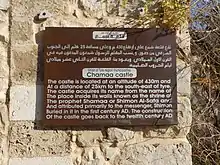 In another assault, the citadel of Chamaa was partly destroyed, including its main tower.[8] While the shrine of Shamoun was rehabilitated with support from the Sheikhdom of Qatar, the renovation of the castle began only in 2014, funded by the Italian government.[23]