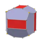Because all its faces have an even number of sides with 180° rotation symmetry, it is a zonohedron. It is also the Goldberg polyhedron GPIV(2,0) or {4+,3}2,0, containing square and hexagonal faces.