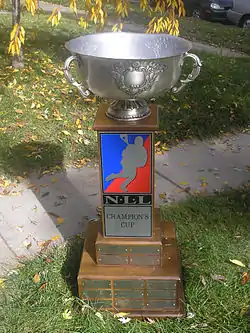 The National Lacrosse League Cup is the trophy awarded each year to the champions of the National Lacrosse League. Prior to 2018, the league awarded the Champions Cup.[1]