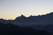 Chandrashila is the summit above Tungnath temple in India. It literally means "Moon Rock". It is located at a height of about 3,690 metres (12,110 ft) above sea level. This peak provides views of the Himalayas, including Nandadevi, Trisul, Kedar Peak, Bandarpunch and Chaukhamba peaks. There are various legends associated with this place. According to one such legend, this is where Lord Rama meditated after defeating the demon-king Ravana. Another legend says that the moon-god Chandra spent time here in penance.[1]