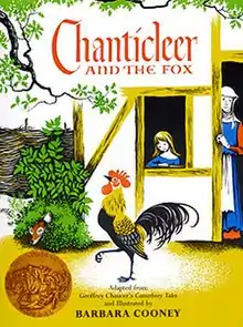 In the children's picture book Chanticleer and the Fox, Barbara Cooney adapted and illustrated the story of Chanticleer and the Fox as told in The Nun's Priest's Tale in Chaucer's Canterbury Tales, translated by Robert Mayer Lumiansky. Published by Crowell in 1958, it was the recipient of the Caldecott Medal for illustration in 1959.[1] It was also one of the Horn Book "best books of the year".[2]