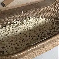 Chaoqi (Chinese: 炒琪/炒祺) is a traditional Chinese snack. It is the dough pieces covered with Guanyin Clay, a kind of soil. The primary raw materials for making Chaoqi are flour, edible oil, egg, sugar, salt, and sesame. It has various flavors like milk flavor, sesame flavor, and five spices flavor.[1]