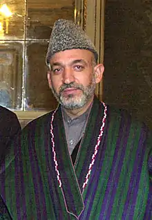 Former President Hamid Karzai, Afghanistan, wearing a chapan and karakul