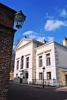 Two patronised chapels royal almost never attended by the monarch are the Chapels of St John the Evangelist and St Peter ad Vincula in the Tower of London, having their own chaplains and choirs. In 2012, Roger Hall, the Chaplain of the Tower of London, was made canon of the Chapel Royal at the Tower of London, the first such appointment since the 16th century.[17] In 2016, the King's Chapel of the Savoy in Westminster, London, which is the monarch's by right of the Duchy of Lancaster, was brought for ecclesiastical purposes within the jurisdiction of the chapels royal.[2][18] Chapels with a royal original purpose, but currently without royal patronage, include the Royal Chapel of St Katherine-upon-the-Hoe in the Royal Citadel in Plymouth. However, in 1927, King George V re-granted the title royal chapel to the Garrison Church.